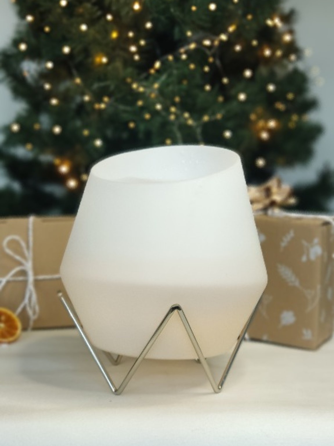 - stylowa szklana osłona (nietłucząca się) i podstawka wykonana z aluminium