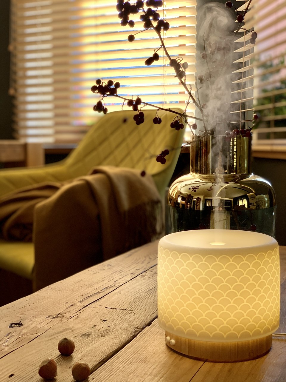 Idealny pomysł na świąteczny prezent! Dyfuzor olejków zapachowych wykonany z solidnej bambusowej podstawy, z ceramicznym dekoracyjnym kloszem jest doskonałym dopełnieniem każdego wnętrza.