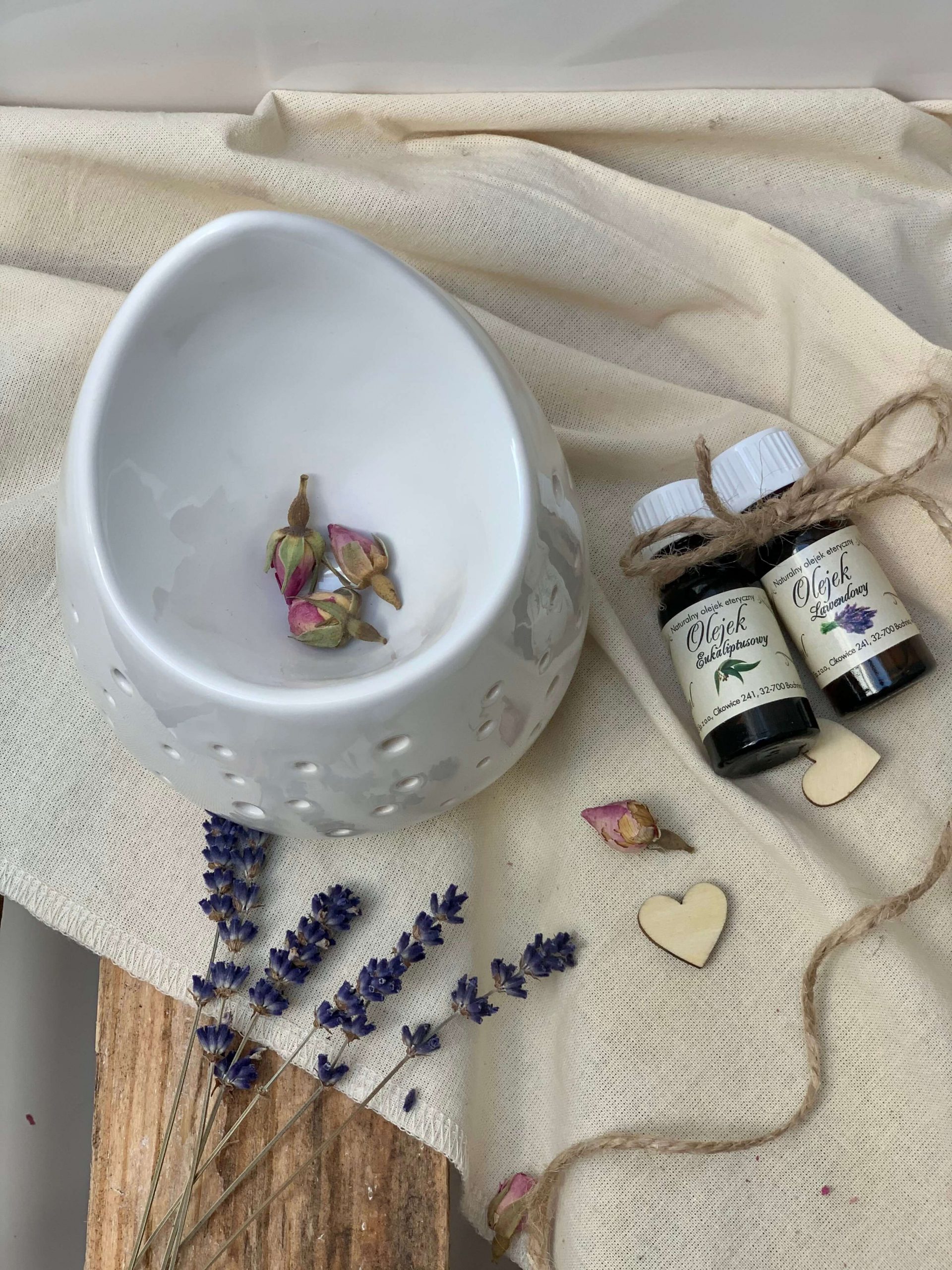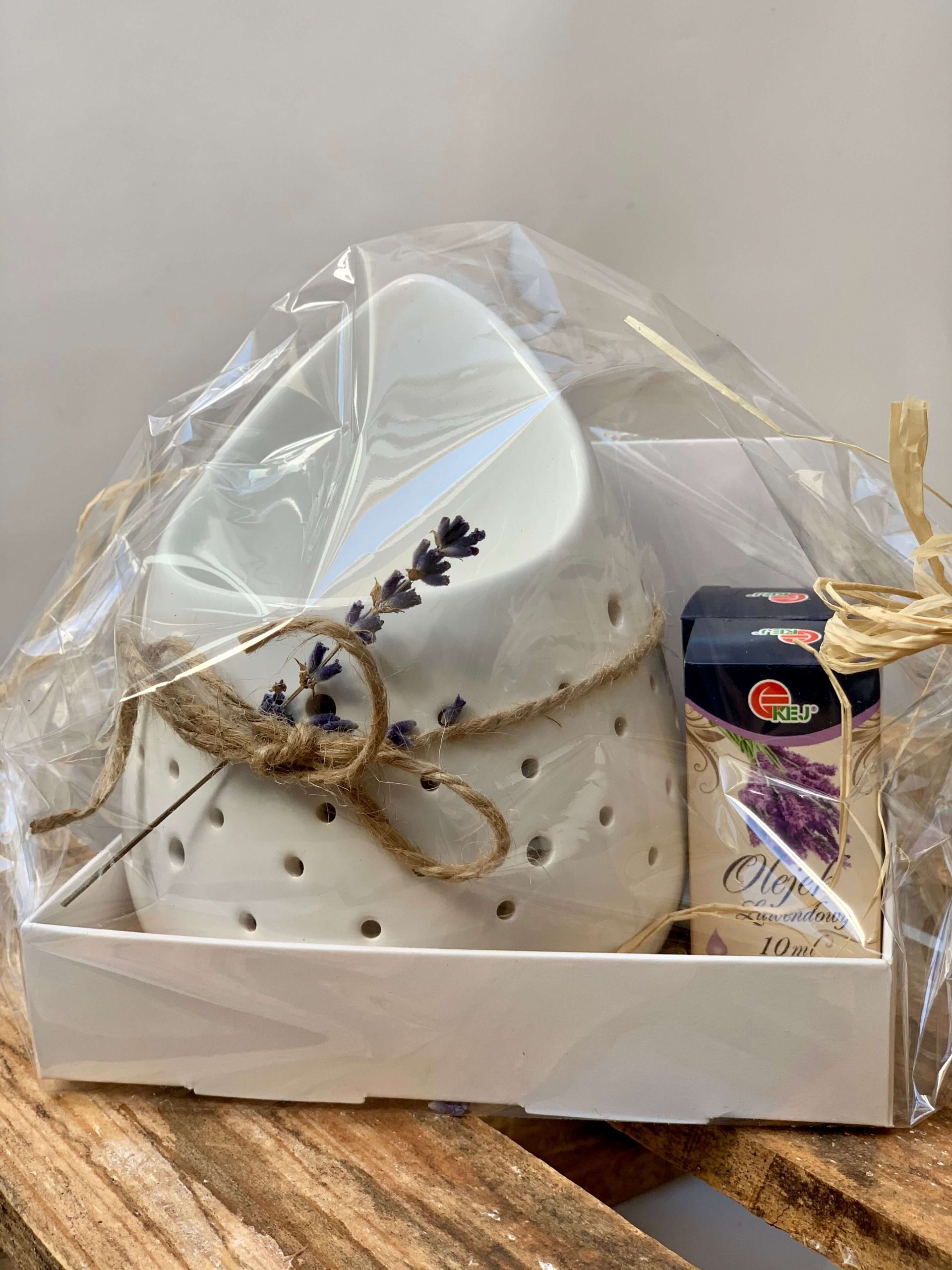 Zestaw prezentowy dla mamy – kominek zapachowy kropla biała + dwa olejki